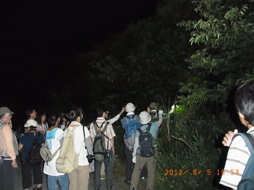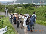 この欄の写真はクリックすると拡大して見ることができます。(撮影:浅野さん)- 夏鳥のさえずりを求めて、40名を超える参加者が集合。