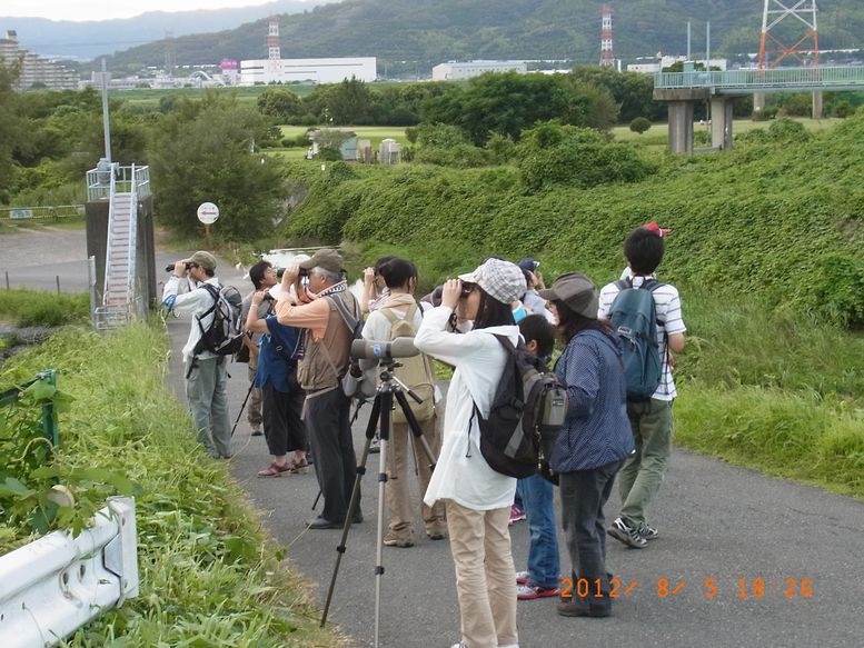 - 定例探鳥会はお休みで18時スタートの「ツバメのねぐら入り観察会」、淀川中洲に入ることができ飛び交うツバメを真近くで見ることができた。