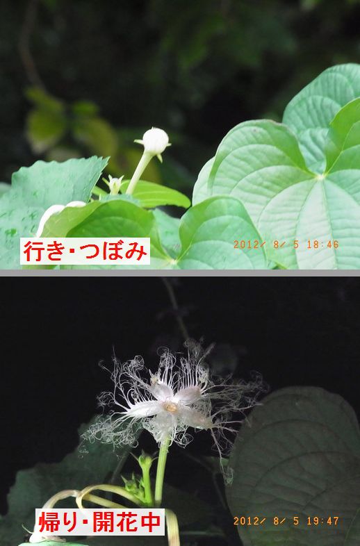 - この大多数のツバメに匹敵するほど人気を集めたのが一輪のカラスウリ、行きにつぼみを確認し、帰りは花が開いているのを全員で観察した。