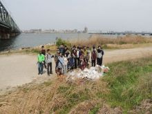 - 探鳥後は花火大会翌日の川岸を清掃した。