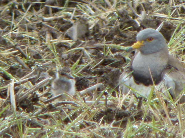 - 耕作地ではケリの親子がいて、雛が走りまわっている姿に注目。