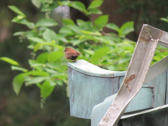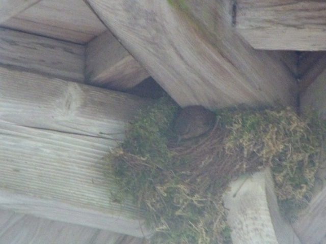 - 転法輪寺にお参りした後、社務所のある大勢の登山者が昼食をとっている広場に来たところ、建物の軒下に大きなミソサザイの巣があり、近くの電線の上でさえずる待望のミソサザイを見ることが出来ました。小さな体なのに、何と大きな声で鳴くのかと驚きます。