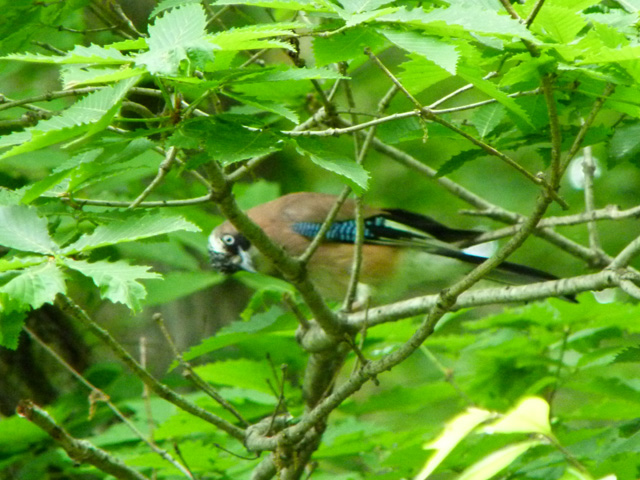 - 午後はブナ林とその下にあるえさ場では青い色が美しいカケスを、林道ではキビタキを観察しました。