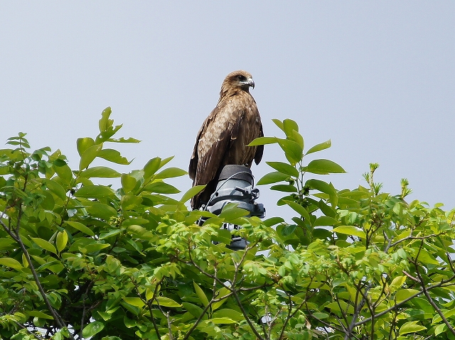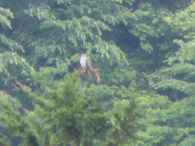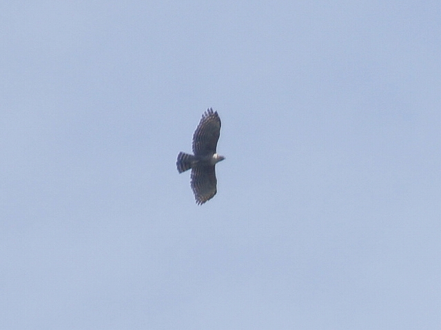 - 樹上のトビ2羽を全員プロミナで確認。上空から稜線へ翼巾が広く長い鷹出現、ハチクマが最後にトリを飾つた探鳥会でした。