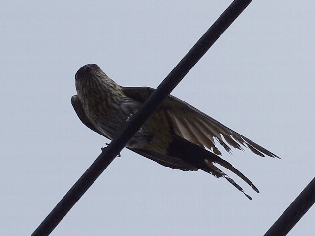 - リーダーから少し前にタカ柱が見えたんですよとの話に、う〜ん残念。しかし、出発時にイワツバメの群れをもう一度見ると、その奥に何か飛んでいる。お〜、タカ柱だ。全員が確認した。