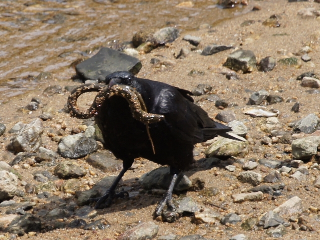 - また、ハシボソガラスが宇陀川の中州でニホンウナギを食べているようす、ダイサギが室生ダムの副ダムの魚道を遡上するアユを次々に捕まえるようすも観察しました。