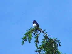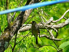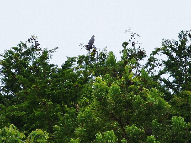 午後にキャンプ場のほうへ出ると、遠くの木のてっぺんで鳴いているカッコウが見られました。並んでもう一羽とまったので、つがいかと思ったらツツドリとのこと、おなかの縞模様(の細かさ!?)を比べ、カッコーとポポッの二重奏も聞くことができました。 - また墓地へおりてきたらミソサザイがにぎやかに歌っていて、木の上にはオオルリがいて、さらに奥の院前へ戻ってくるとツバメがびゅんびゅん飛んでいました。電線に止まっているツバメとコシアカツバメのおなかくらべもしました。今日はおなか比べの日でした。