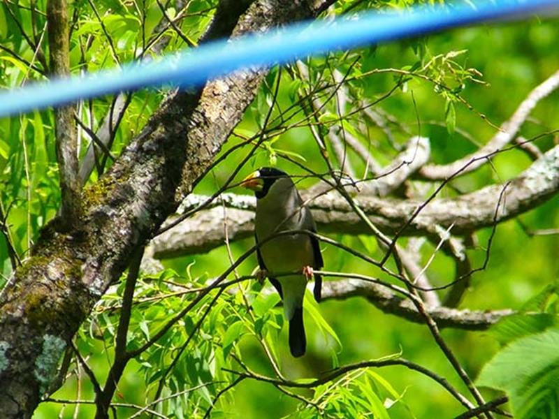 - ともあれ、転軸山のふもとをまわって、深い木立から聞こえるキビタキの声を何度も聞き、キクイタダキの声にも耳を澄ませましたが、とうとう見られず残念でした。それでも昼食時にはキセキレイの綺麗な色を堪能することができ、カケスが出たりオオルリが出たり、おちおち食べていられないくらいです。