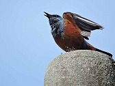 - あいにくの雨の中、17名が参加、榛原駅前でイソヒヨドリの若いオスが美しい声でさえずるところを確認し、傘をさしながらのスタート。