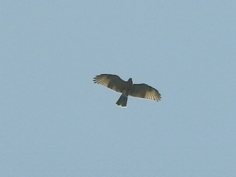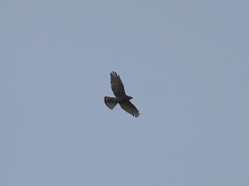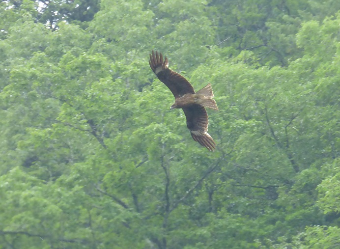 - 鳥合せ後、駐車場上空をトビが旋回する中、これも初確認となるハチクマが飛翔。