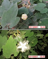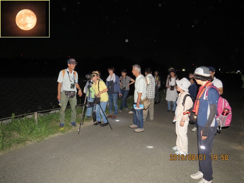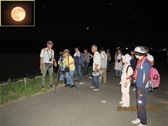 - ツバメが飛ぶ前につぼみだったカラスウリは、ツバメを見終ってレースの花びらを広げており、更に赤く染まった十六夜の月の出も楽しんだ。