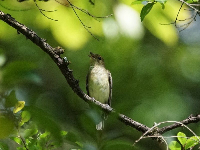 - 飛鳥川ではカワガラスを見ることができました。昼食の時も目の前をエゾビタキ、コサメビタキ、キビタキ・・・が飛び回り、ヤマガラがエゴノキの実を咥えて飛び回る姿も見ることができました。