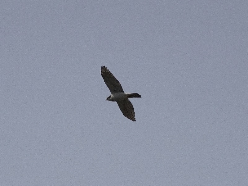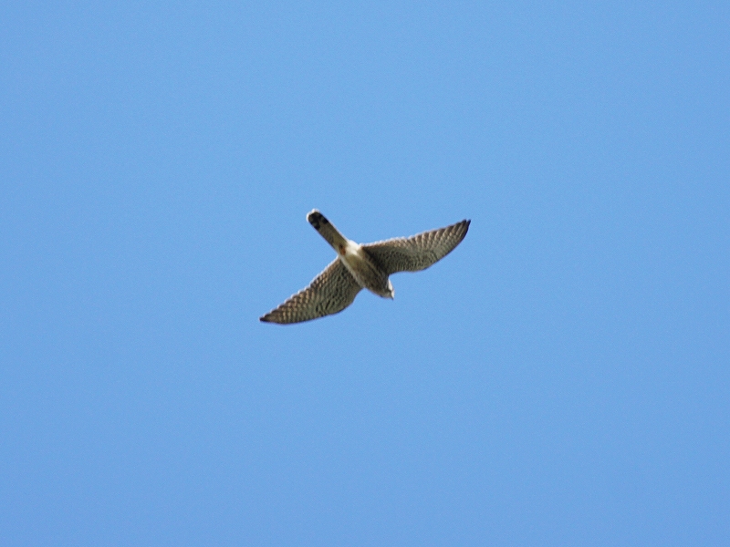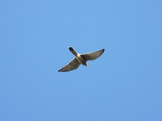 - 午後のコースへの出発前、ノスリの姿を点のような高さの中、ベテランの方の指摘により、確認できました。また、その直後に、すぐ頭上を飛翔する鳥をチョウゲンボウとの同定があり、リーダーからそれぞれの特徴の説明を受けました。