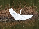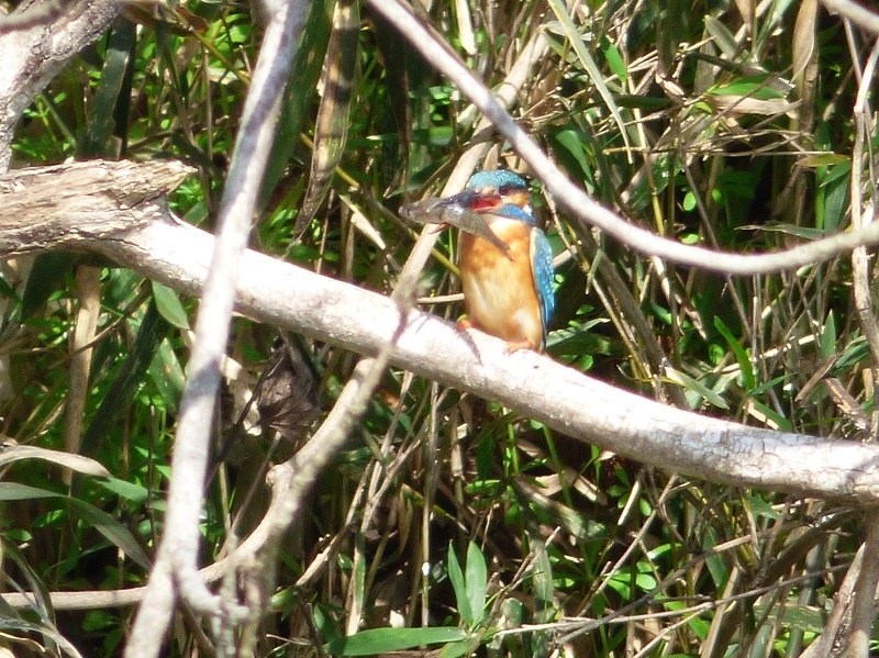 - カワウが上空を気流にのって何度も旋回したり、アオサギの首振りダンス(大きな餌が食道に詰まって苦しかったのか?)、イタチが突然現れたり、実に楽しく興味深い探鳥会であった。