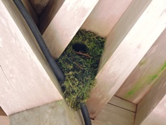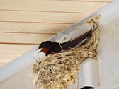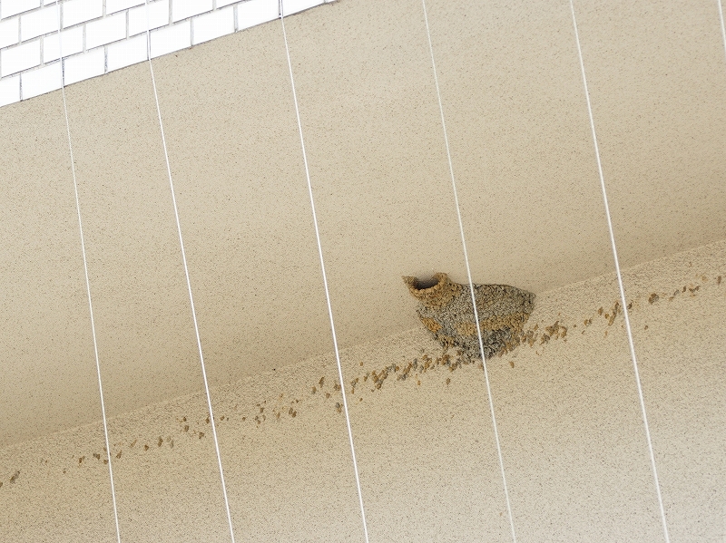 - た、一行は、駅近くの老健施設の壁面、ダクトの上に作られたコシアカツバメの巣に親鳥が出入りするようすを観察。
