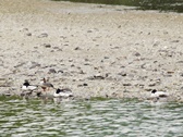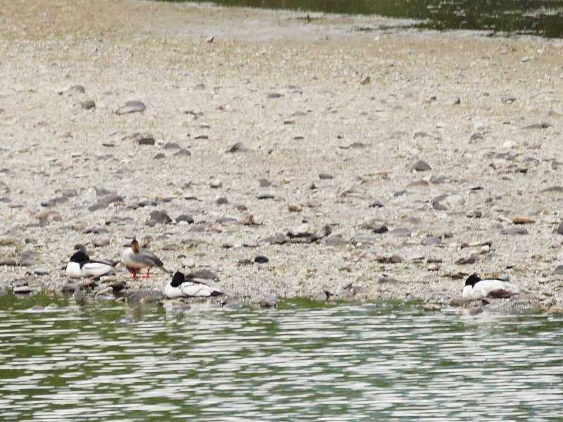 - 紀の川の中州になぜか、カワアイサ雄3羽、雌3羽がいて、びっくりでした。