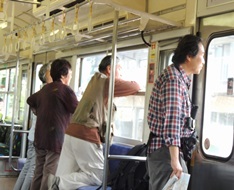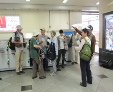 - 参加34名のうち、びしょぬれ覚悟で飛鳥駅に向かう11名は、早めの昼食とし、いざ無数のヒガンバナが咲き競う稲渕の棚田へ。