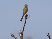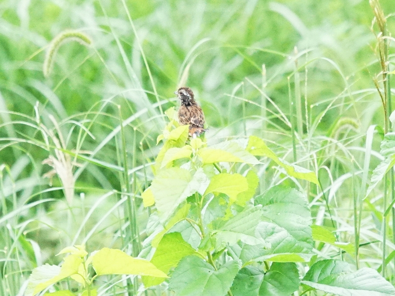 - 稲刈りが終わった田んぼの周辺ではノビタキが数羽、丈の高い草に掴り皆の注目を集めました。