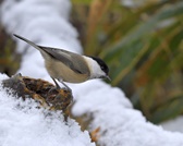 - 昨年より19日遅い初冠雪を記録した金剛山。38名が参加。二つのグループに分かれ、午前中は、ちはや園地を中心に冬の小鳥たちを観察。午後からは、ブナ林まで足を延ばし、餌場に集まる小鳥たちを観察し、合計23種を確認。