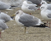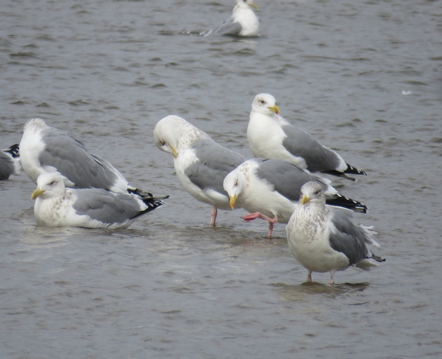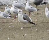- この日の一番人気はモンゴルセグロカモメ(日本鳥類目録ではキアシセグロカモメの亜種に分類、名前と異なり足は黄色くなく淡いピンク)成鳥2羽。頭の色の白が際立って見えた。水浴びや羽づくろいをする様子などもじっくり観察できた。