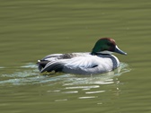 - 何よりも興奮したことは、多種多数の水鳥の中でただ1羽のトモエガモ♂を見つけだして、スコープで確認させていただいたことです。なんとその巴模様の顔の鮮やかな配色には興奮しました。