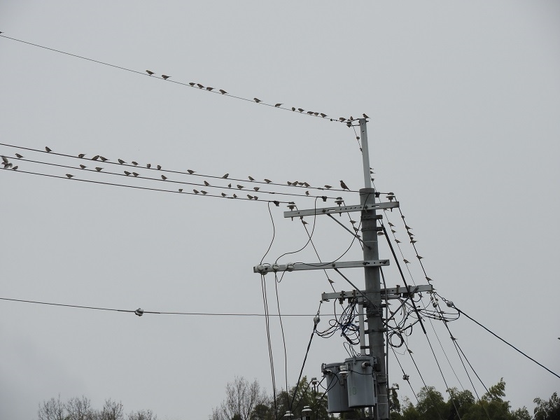 電線にはニュウナイスズメだけでなく、カワラヒワやスズメも混じっていました。どの子がニュウナイスズメ?と双眼鏡で探しながらの観察はとても楽しかったです。暫くの間、電線に留まっていたので、オス・メスともにじっくり観察することが出来ました。 今日は見られないかな…と思っていた時だったので、とても嬉しかったです。また来年もこの回に参加したいなと思いました。スタッフの皆様、参加者の皆様、今日一日楽しい時間をどうもありがとうございました。