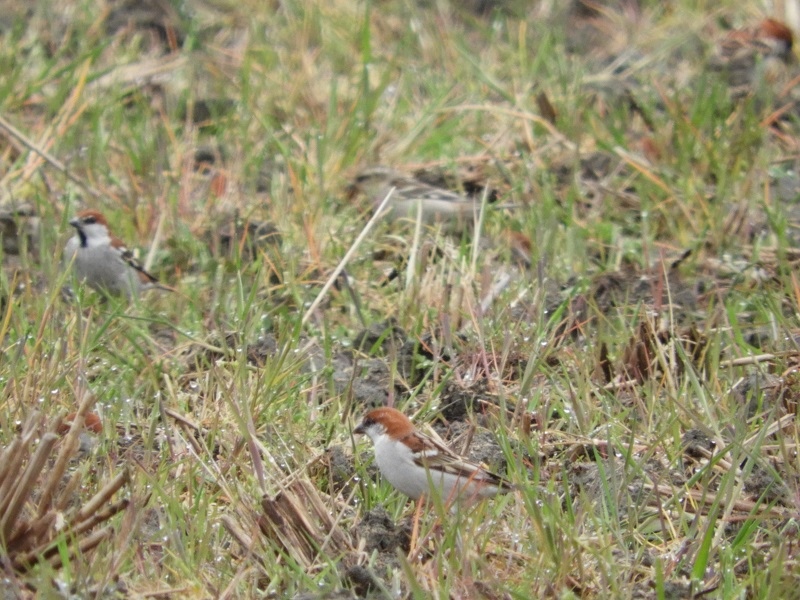 そして今日のバードウォッチングで一番感動した出会いは、ニュウナイスズメの群れに出会えたことです。鳥合わせが終わり、帰路の途中、法隆寺駅へ向かうまでの、ニュウナイポイント(??)にて、群れに遭遇出来たのです。