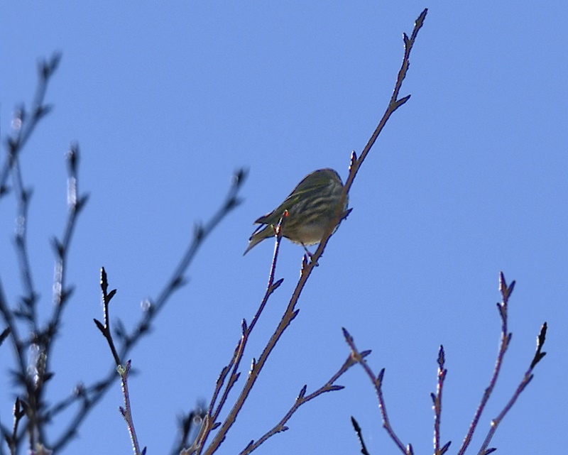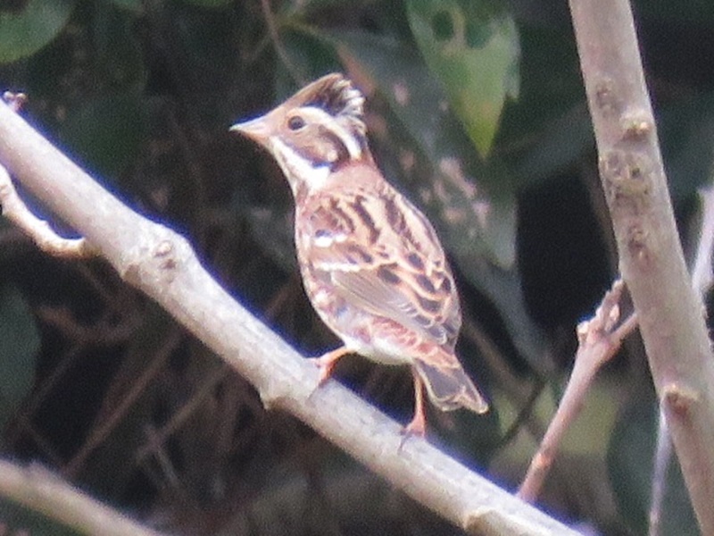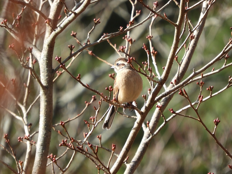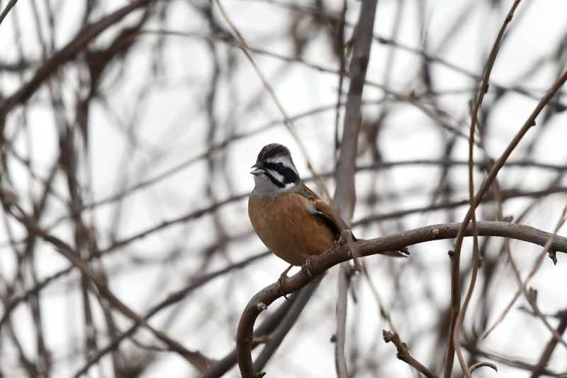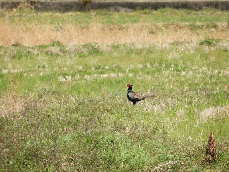 途中でアオジやカシラダカなどのホオジロの仲間もたくさんん観ることができました。ホオジロは、高い場所でぐぜり始めている雄も居ました。アオジが出てくるのを観ていると、目の前の茂みからいきなりキジの雄が大きな羽音を立てて飛び立ちました。飛んだ後、見失ってしまいましたが、初めてキジが飛んでいるところを観られてとても嬉しかったです。