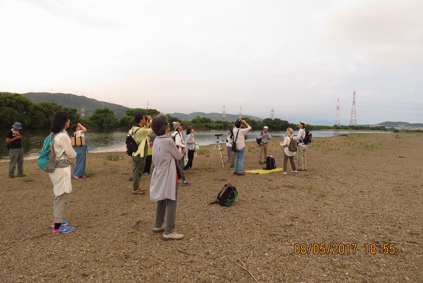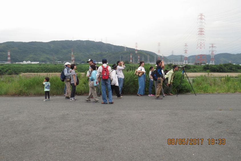 2017/8/5(土)/ツバメのねぐら観察会/天候:曇り/参加者25名/観察種数22種/鳥合わせ