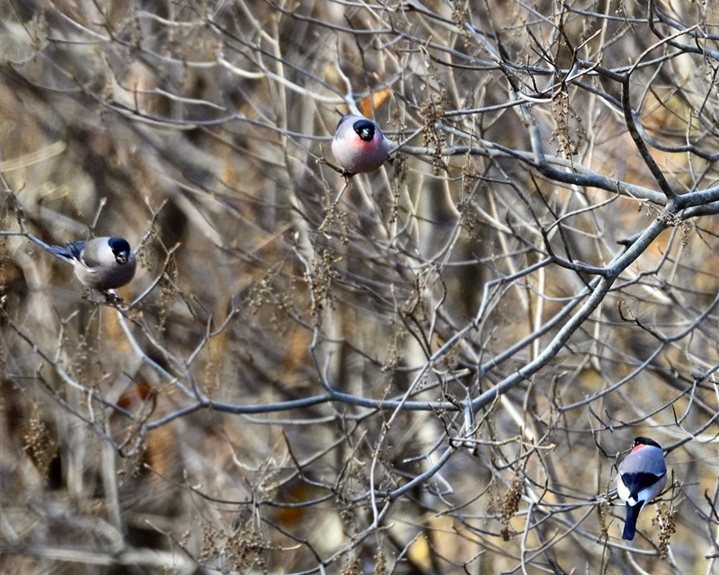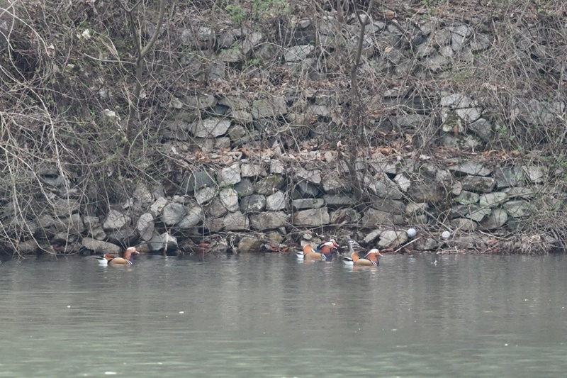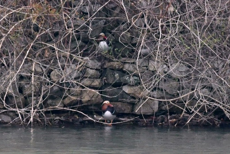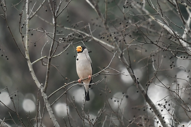 その後、真池では、20羽以上のオシドリに圧倒されていますと、背後ではイカル群れが飛来し囀りが響きました。その美声に皆様、癒されたことと思います。