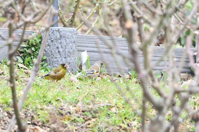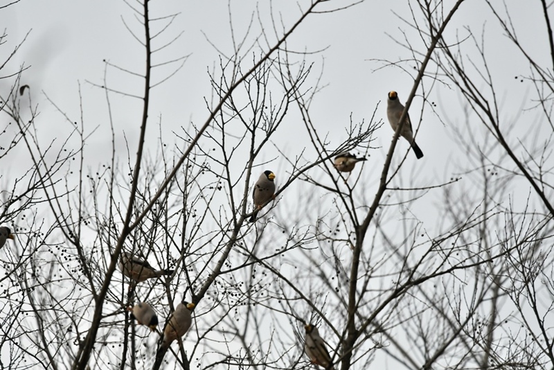 セキレイの仲間もハクセキレイ・キセキレイ・セグロセキレイ・ビンズイの4種類も観ることができました。 その後も、イカルの大群が地面で餌を食べたり、大群で飛び立って頭の上を「キョッキョッ」と鳴きながらぐるぐる飛び回っているのや、ニュウナイスズメが木の実のように集団で枝に止まっているのを観ることができました。