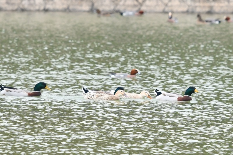 ハシビロガモの採餌のようす、スギに止まったノスリ、常緑樹の陰で見えにくかったもののアオバト、せわしなく動くカシラダカ、飛び去るキジ雄、ニュウナイスズメの群れなど、見どころの多い探鳥会となりました。