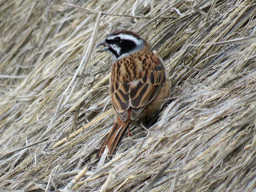 カシラダカの胸はホオジロと違い縦班があることなどを教えて頂けるのも探鳥会ならでは。