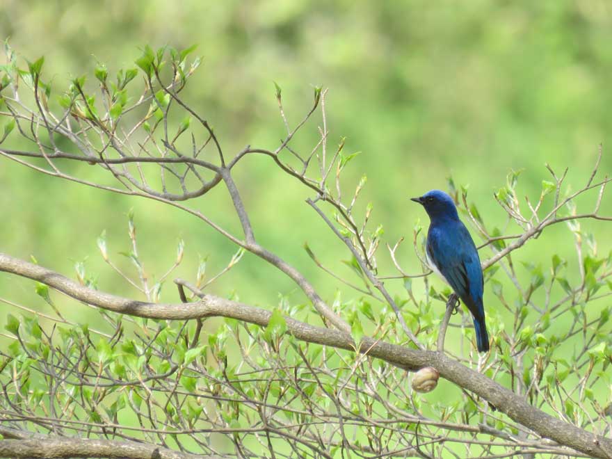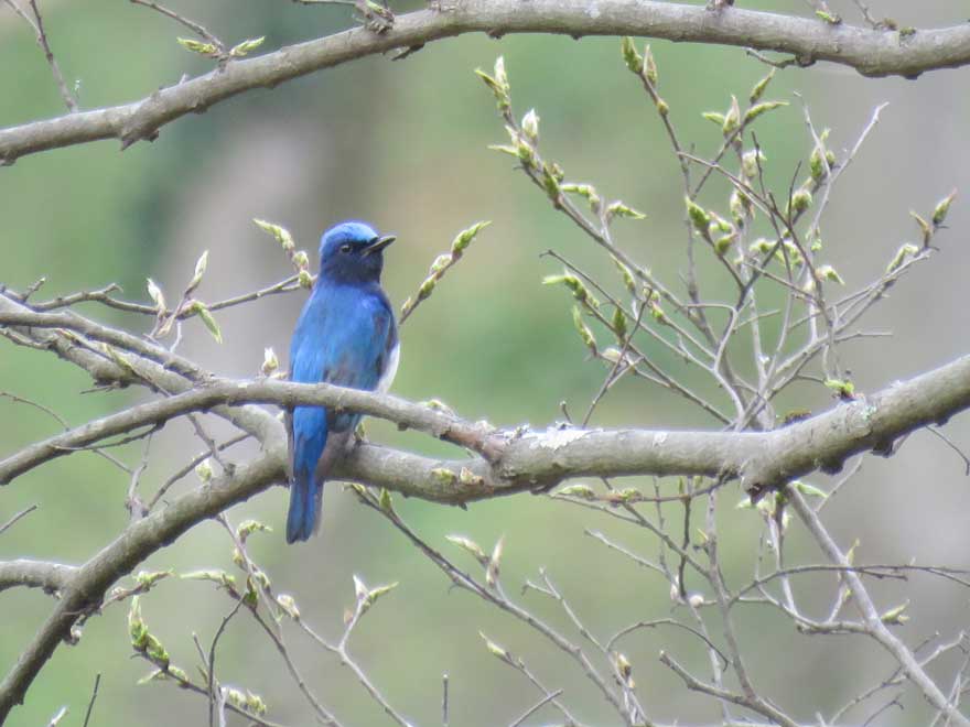 最後にとっても綺麗な青い鳥オオルリが枝から枝へチョコチョコしていました。遥か南の国から渡って来たばかりだとリーダーに教えてもらい、その強さと色鮮やかさに、さらに引き込まれたような気がします。