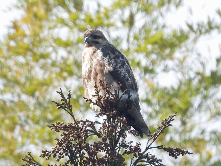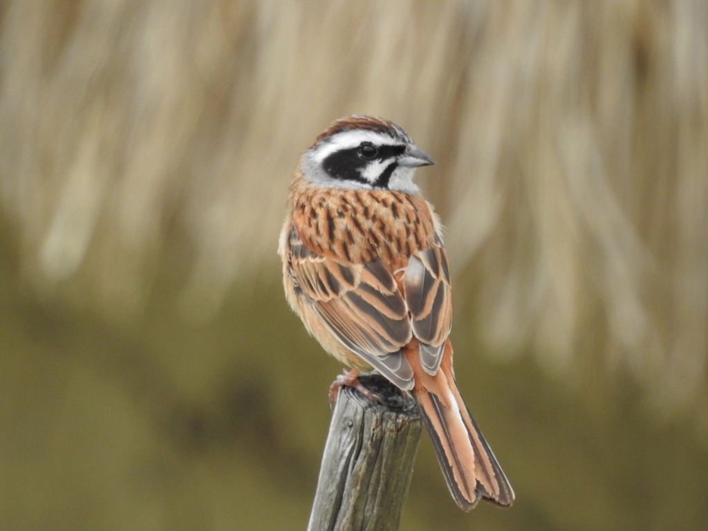 和田池の南側では、スギの梢にノスリが長時間にわたって滞在。草地には、カシラダカの群れ。