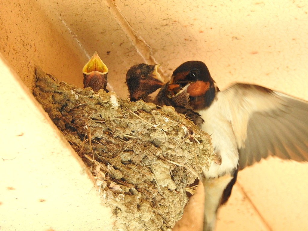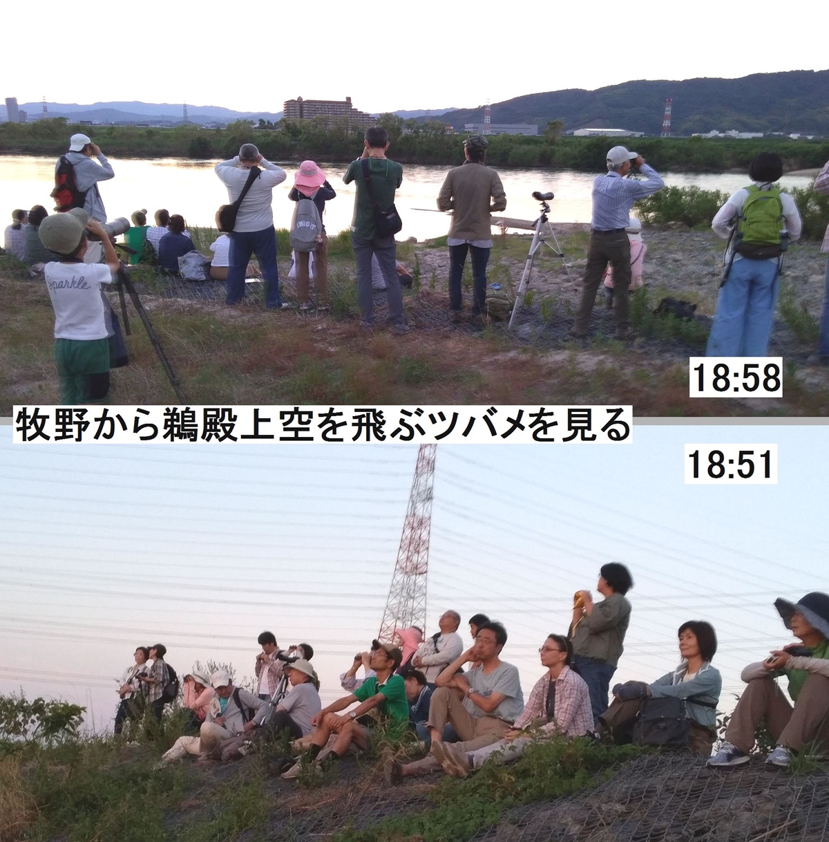 淀川対岸の高槻市鵜殿上空を双眼鏡・望遠鏡で見ると無数のツバメによる群舞、その一部は近づいて淀川本流上で宙返り、そして水飲みが繰り返えされた。
