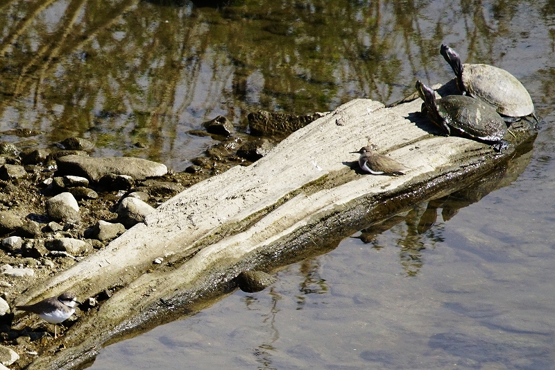 まず最初に大和川に行き、タシギやイソシギ、ケリを見つけました。ほかにもカイツブリやヒドリガモ、カルガモなどカモ類をたくさん見ることができました。