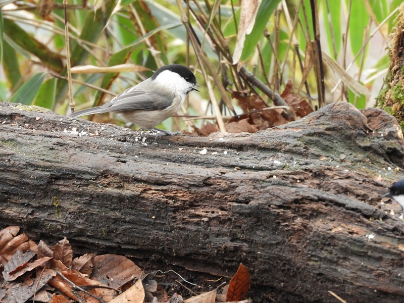 午後から神社そばの餌場に行ってみると、ヤマガラ、シジュウカラ、ヒガラ、コガラ、ゴジュウカラなどがひっきりなしにやってきて餌をついばんでいました。ヒガラやコガラも手に乗せたエサを食べに来てくれました。また、カケスが数羽いましたが、警戒しているのか餌台まではやってきませんでした。