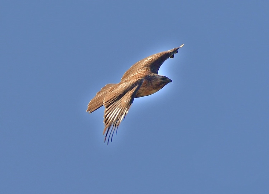今日はノビタキを見たいと思って参加していたので、日本の原風景が残る野原で出会ったときは大変嬉しく思いました。葛城山上空ではイワツバメやコシアカツバメが舞っており、クマタカの姿も追うことができました。帰りの稲田でもたくさんのノビタキに出会い、渡りの時期の可憐な橙色の胸が印象に残っています。