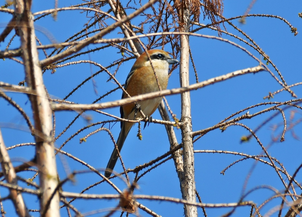 台風の影響で雨が降り、どうなるかと思いながらの出発でしたが、雨が降っても鳥たちは活動しており、出発してすぐにイソヒヨドリの出迎え、モズの高鳴きの中を歩きました。