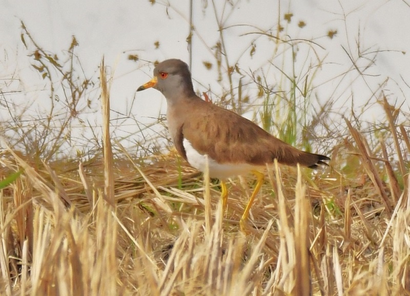 喜志駅の南東に広がる畑地でケリ・モズ・ホオアカを確認。粟ケ池共園の緑地の樹上にはツグミの群れ、岸辺で水浴びをしているところも確認。