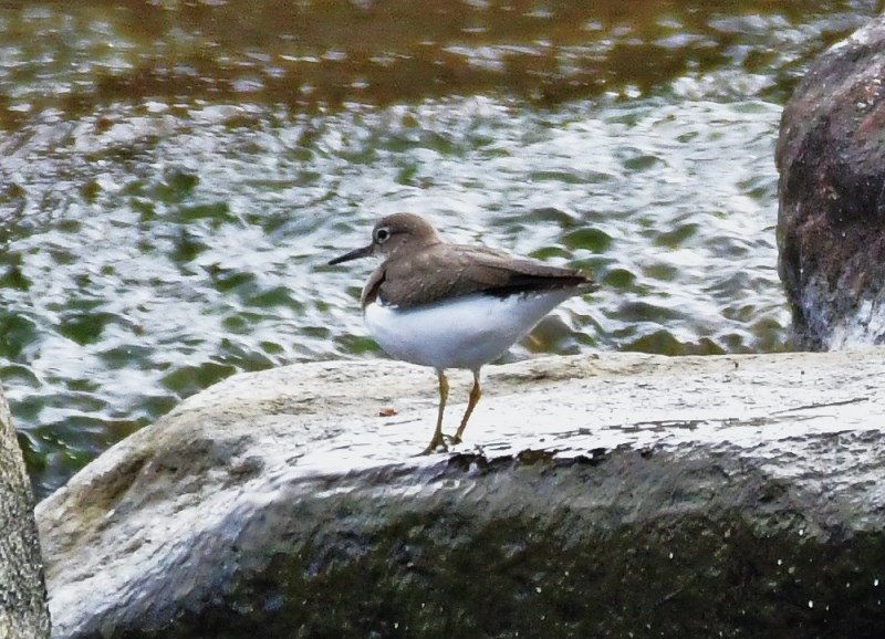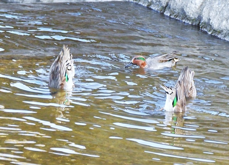 石川河川敷でコサギやカワウの群れ、イソシギを確認。昨シーズンに引き続いて当地に出現したオカヨシガモとハシビロガモの交雑個体をじっくりと観察。