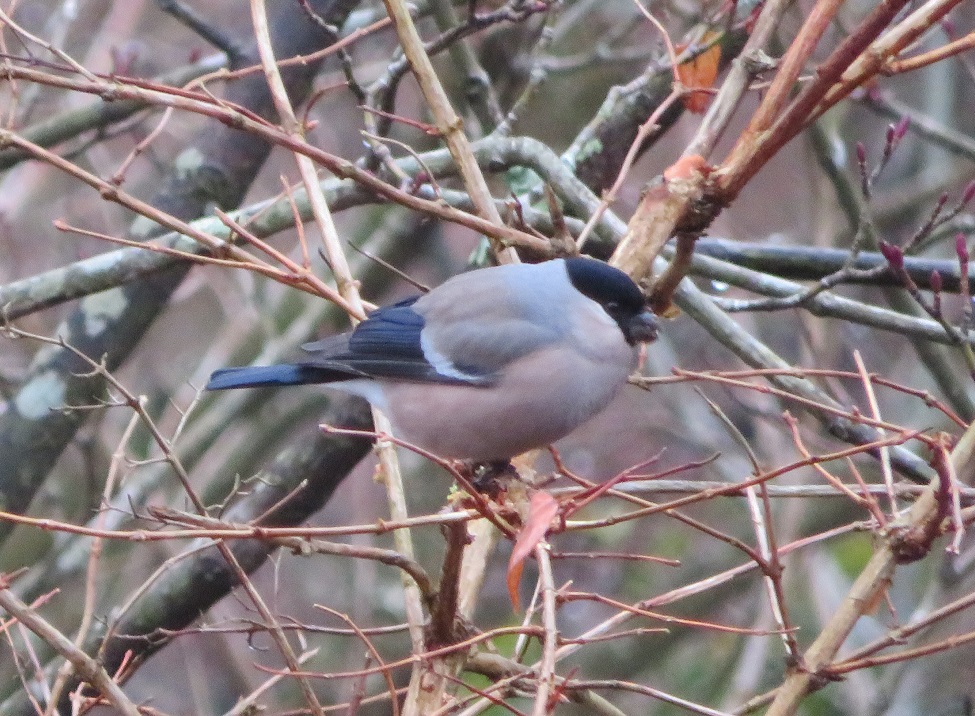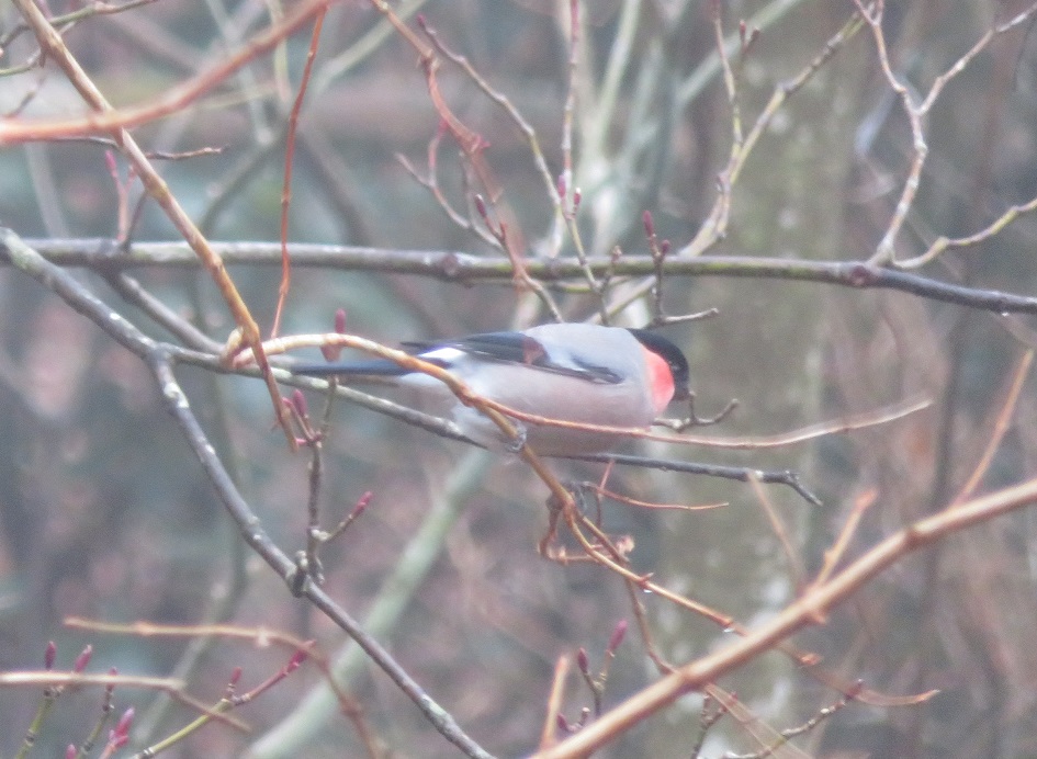 鳥合せ後すぐ、ミュージアム前の茂みでウソの群れを確認。