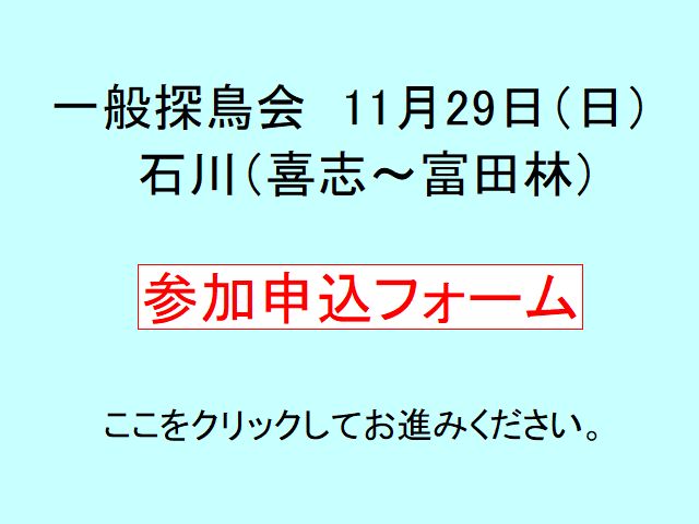 一般探鳥会(要事前予約)11月29日(日)