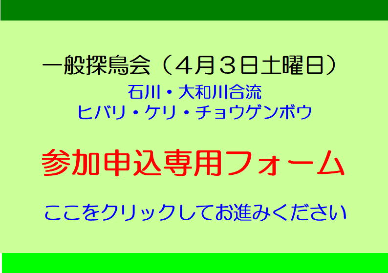 一般探鳥会(要事前予約)3月6日(土)