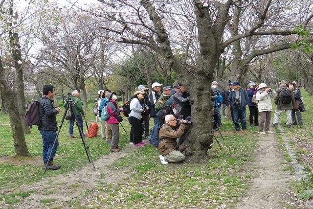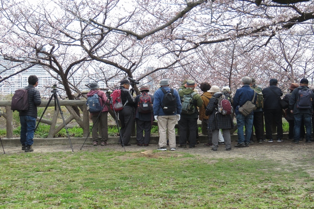 第2回目のシルバーバードウォッチングは曇り空で雨が心配されましたが昼頃には日もさしだし、桜も咲き始めた園内を探鳥しました。