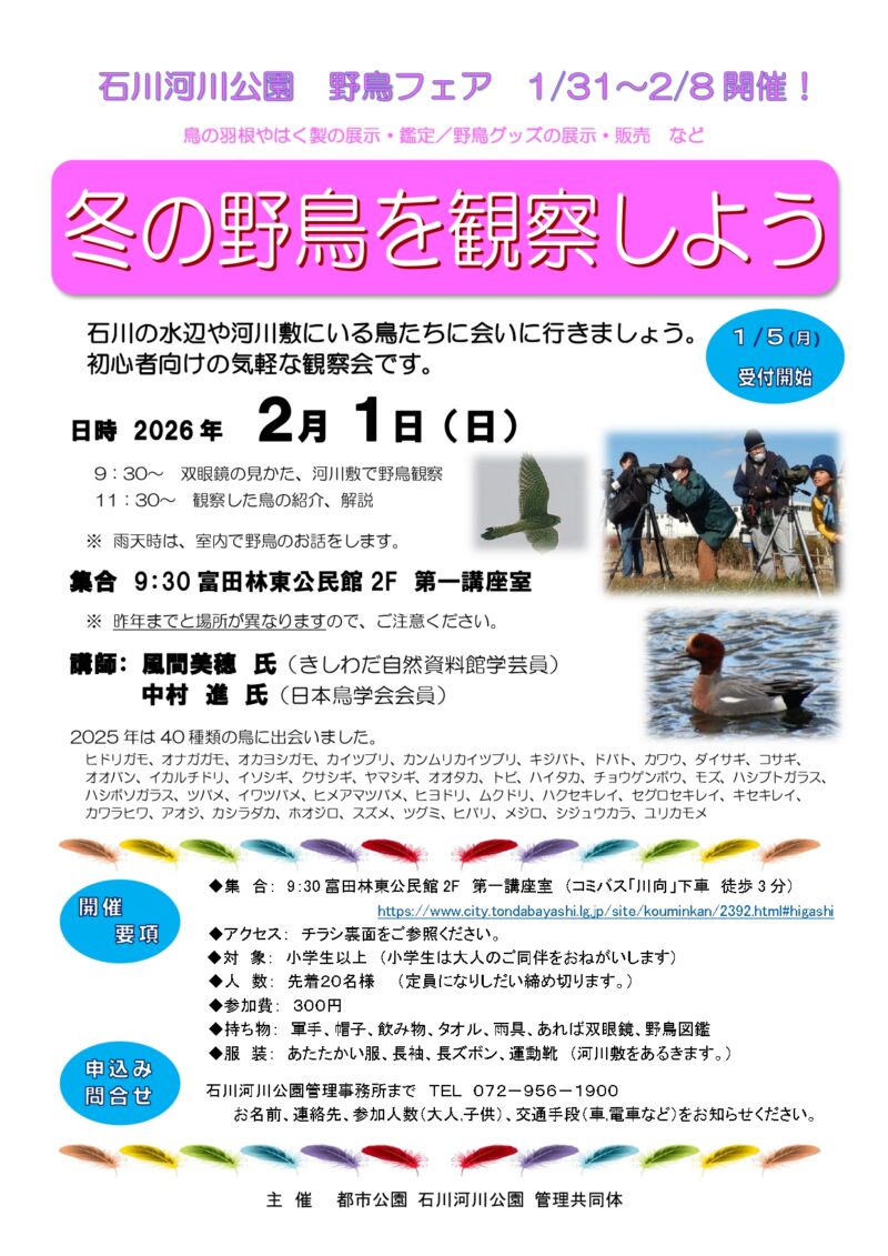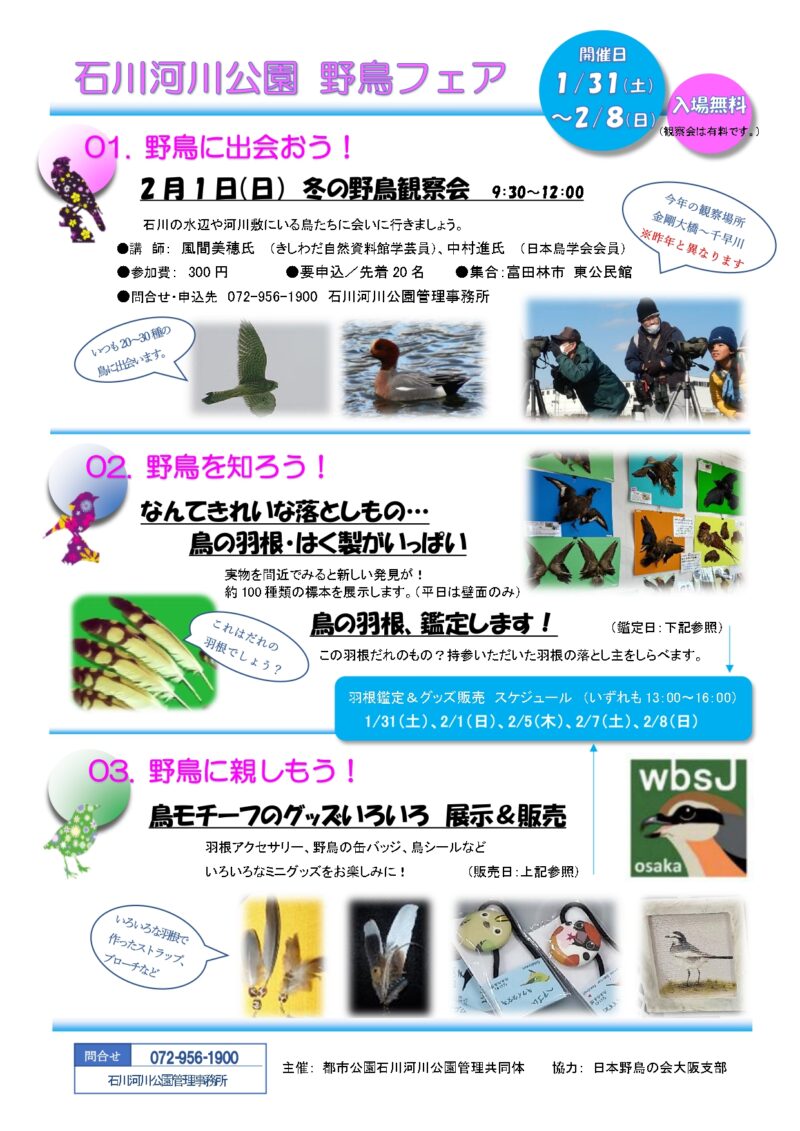 | 主催 | 都市公園石川河管理共同体/協力:日本野鳥の会大阪支部 |