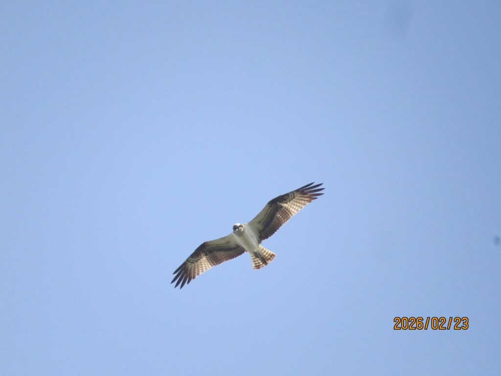 集合場所で待っていると、さっそく最初の鳥を発見しました。最初の鳥はミサゴでした。魚を持ちながら飛んでいて、お迎えをしてくれました。
