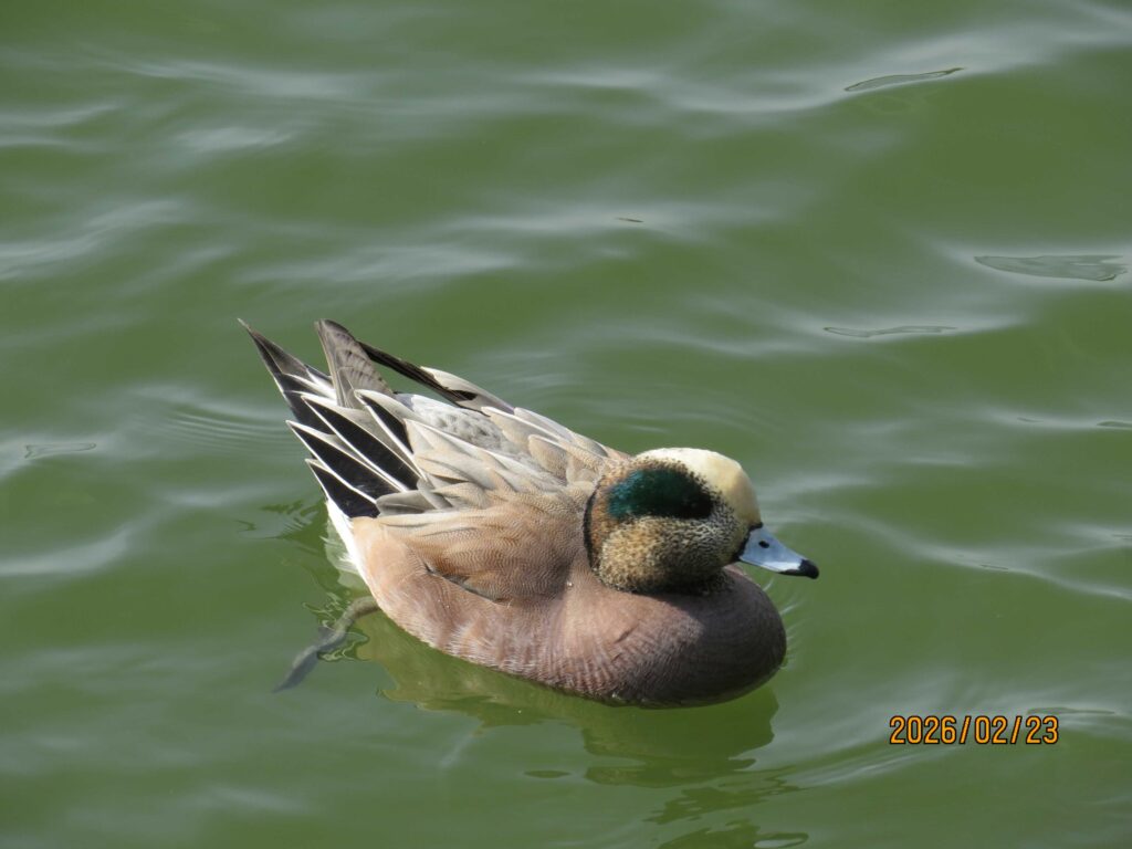大池ではアメリカヒドリ×ヒドリガモの雑種やトモエガモ、アメリカヒドリが泳いでいました。アメリカヒドリはずっと見てみたかったので、初めて見られて嬉しかったです。