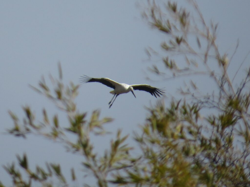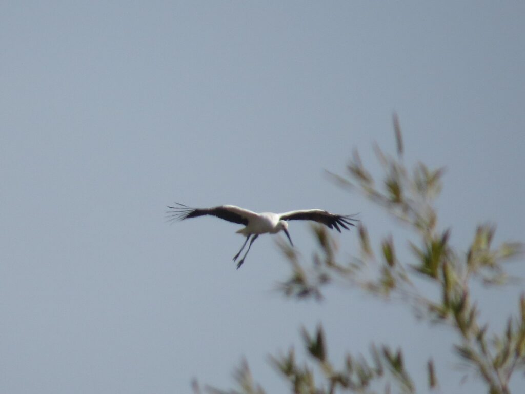 昼食を食べにスポーツセンターに戻る途中で、コウノトリが1羽で飛んできました。大きくてすごい迫力でした。